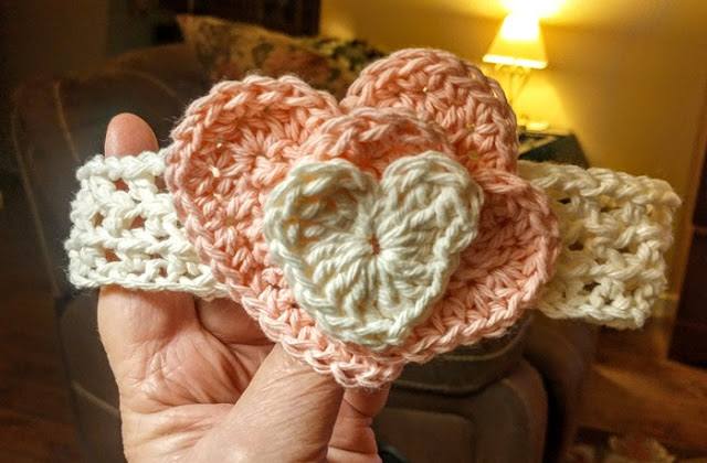 We spent Valentine's Day with the people we love! On Tuesday, we took this cute little headband to Clara, my sweet little granddaughter, so that she could wear it on Valentine's Day. I had fun crocheting it for her, it was super easy and looked adorable on her.